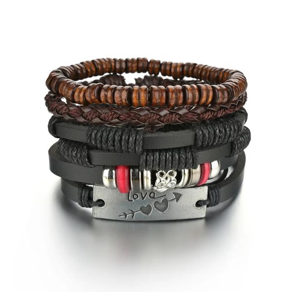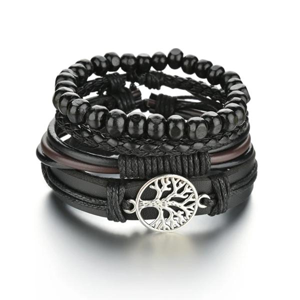 Name:MeMolissa Vinatge ゴシックパンク編組ラップレザーブレスレット男性用サソリライフツリーウッドビーズエスニック部族リストバンド