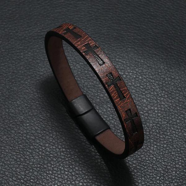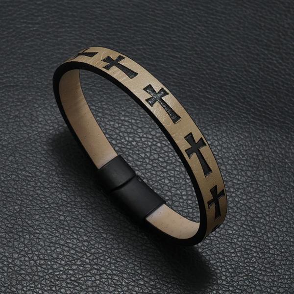 小説男性レザーブレスレット取り外し可能なマグネットバックルパンククロス Braclet アクセサリー彼 Pulseras パラ Hombre Erkek Bileklik