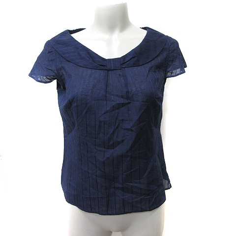 【中古】ニューヨーカー NEWYORKER シャツ ブラウス 半袖 ストライプ シアー 9 M 紺 ネイビー /YI レディース