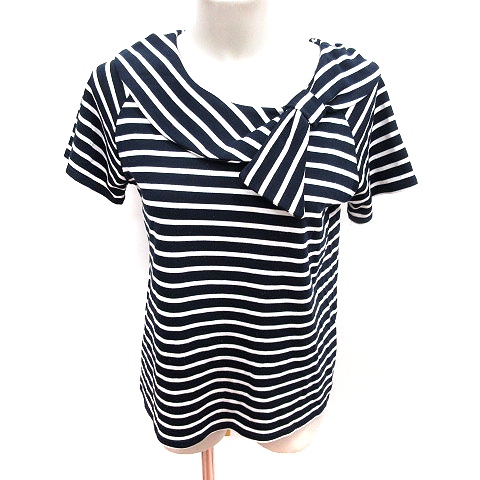 【中古】ビス ViS ニット カットソー Uネック 半袖 ボーダー F 紺 ネイビー 白 ホワイト /RT レディース