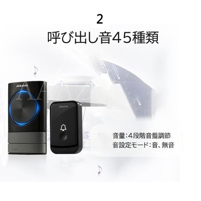 ワイヤレスチャイム 玄関 チャイム ドアベル 呼び出し音45種類 4段階音量調節 玄関ドア お店用 家庭用 長距離 面倒な配線不要 無線 受信機1個 介護 おしゃれ