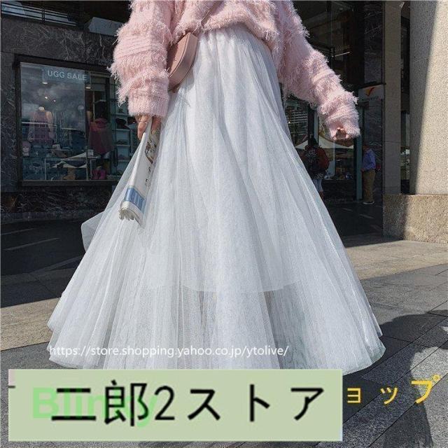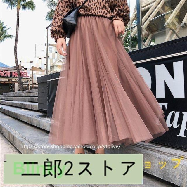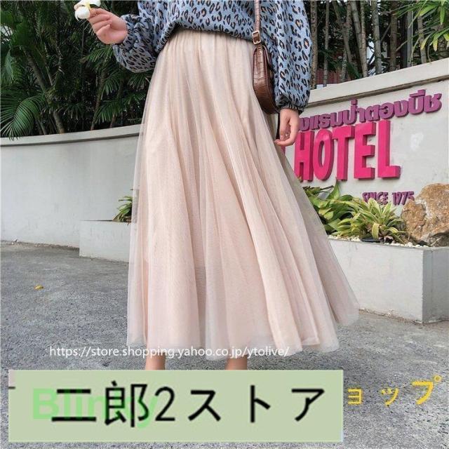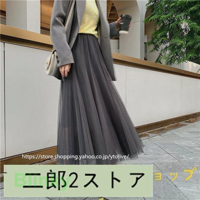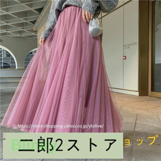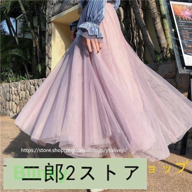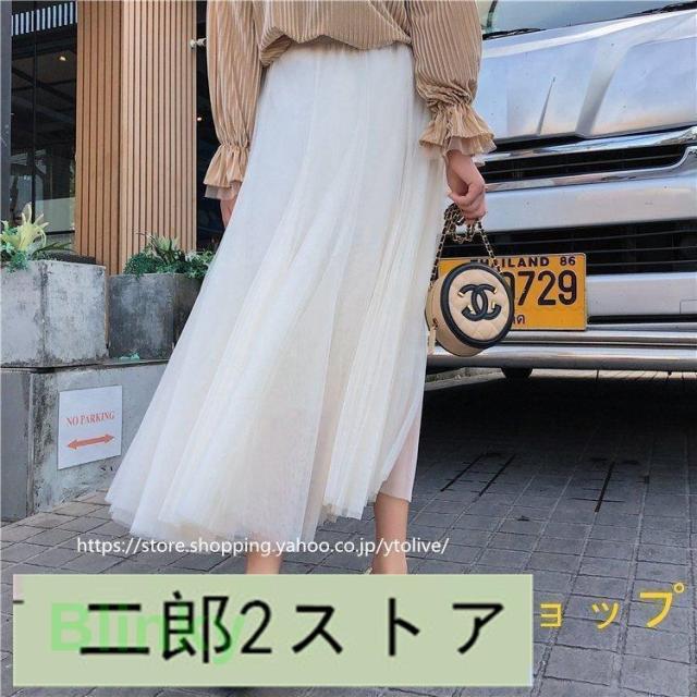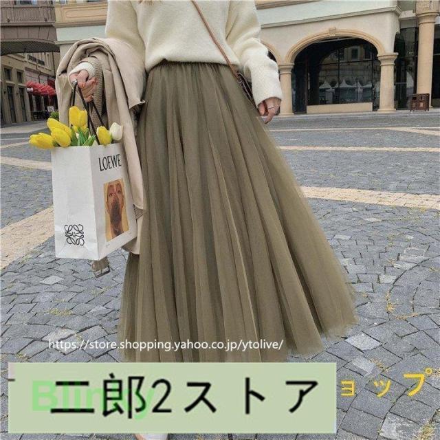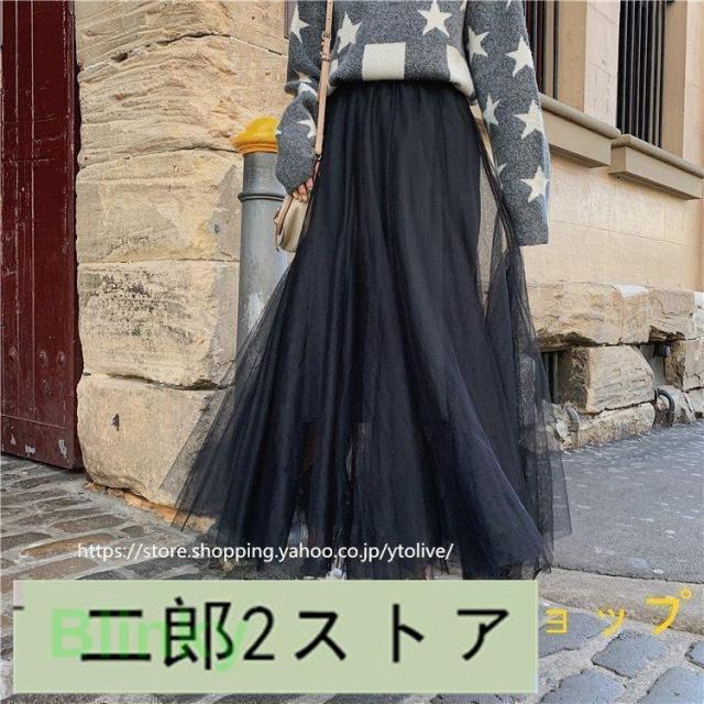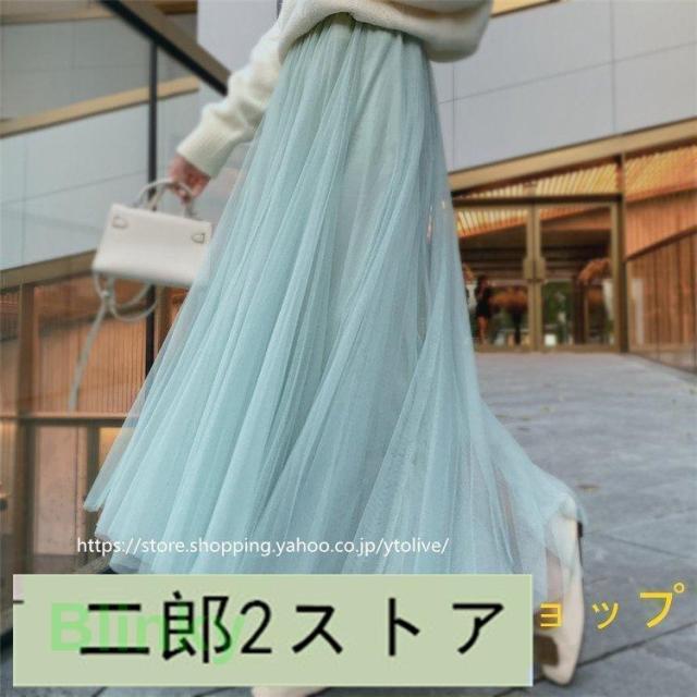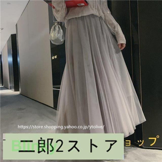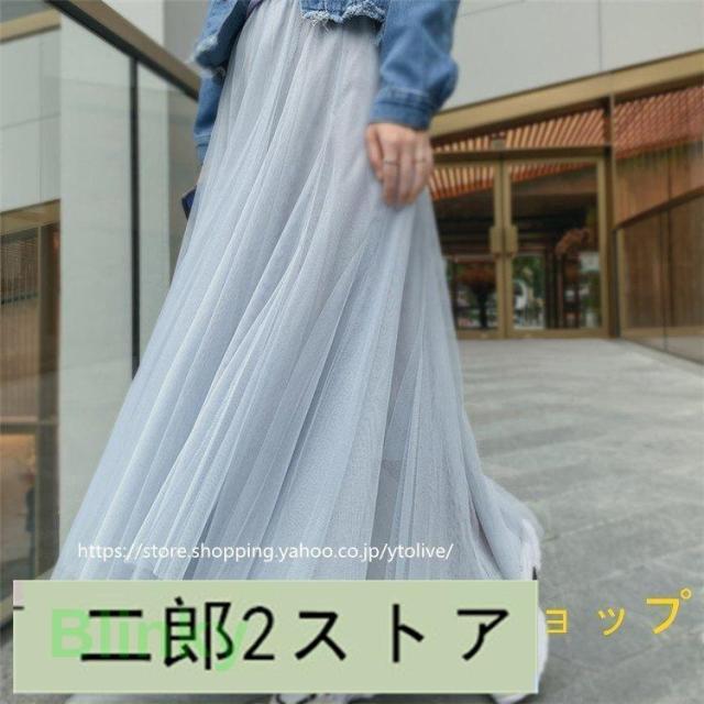 スカート 春服 レディース ロングスカート マキシスカート チュール スカート ウエストゴム ゆったり 裏地付き