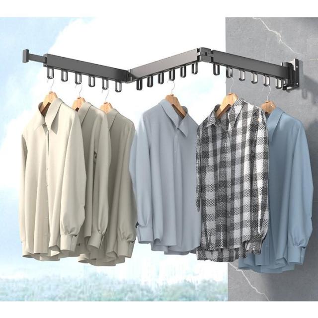 壁掛けハンガーラック 折り畳みハンガー 室内物干し 回転可能 物干し竿 9連ラック 洗濯物干し 部屋干し掛け 乾燥ラック 洗濯ハンガー
