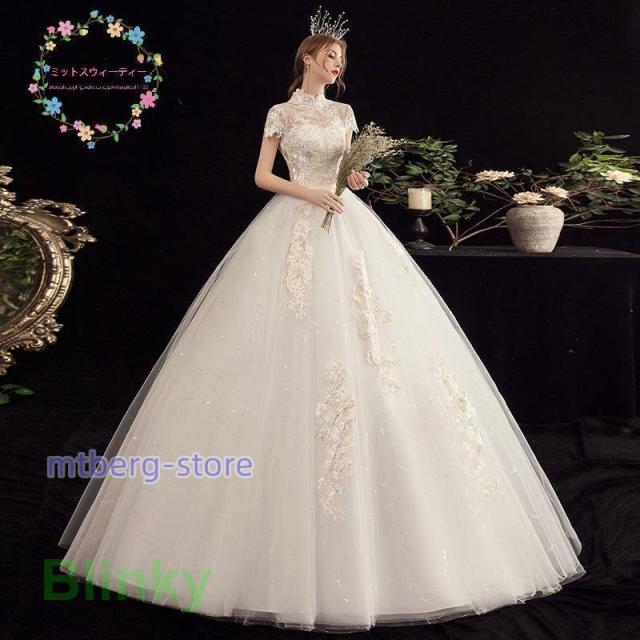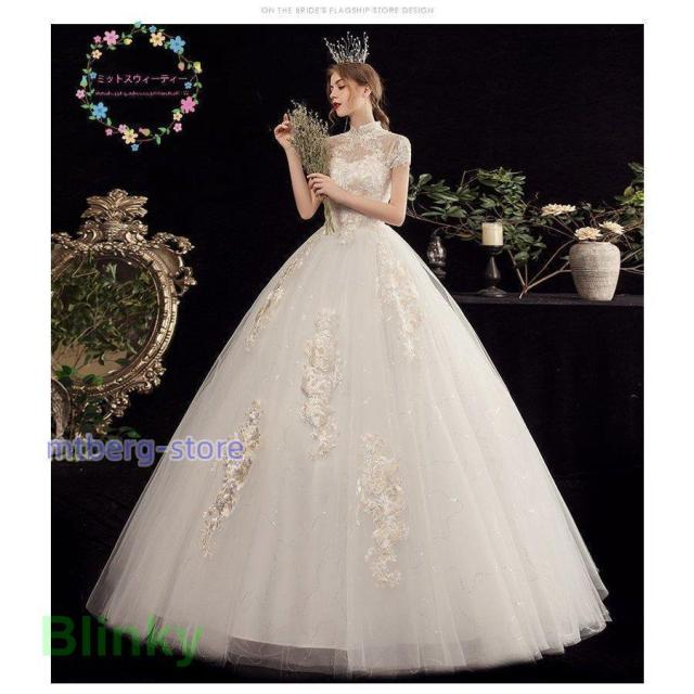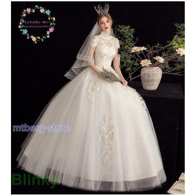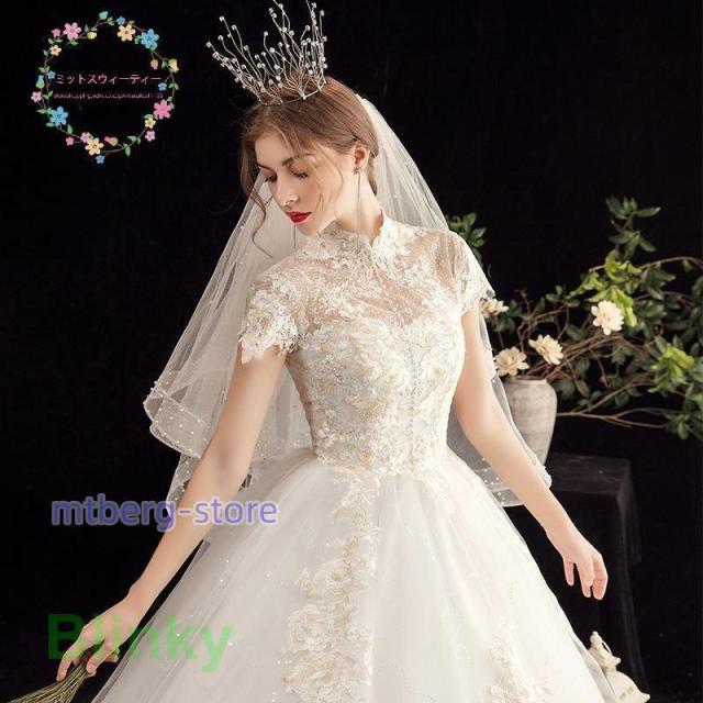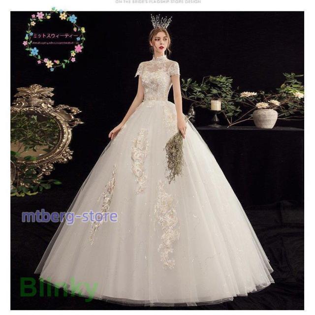 ウエディングドレス 結婚式 花嫁 二次会 プリンセスライン ホワイト 袖付き ウェディングドレス ロングドレス 披露宴 マタニティにオーダー可 編み上げ