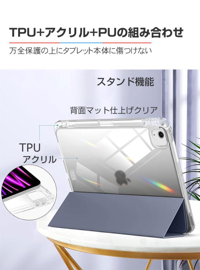 Apple iPad Air 11インチ (M3チップ) ケース 耐衝撃 カバー 2025年春モデル アップル アイパッド エアー 11型 (M3チップ) CASE TPU+アクリル+PUレザー製 持ちやすい Pencil Pro収納 装着したまま充電可能 オートスリープ スタンド機能 手帳型カバー タブレット保護ケース