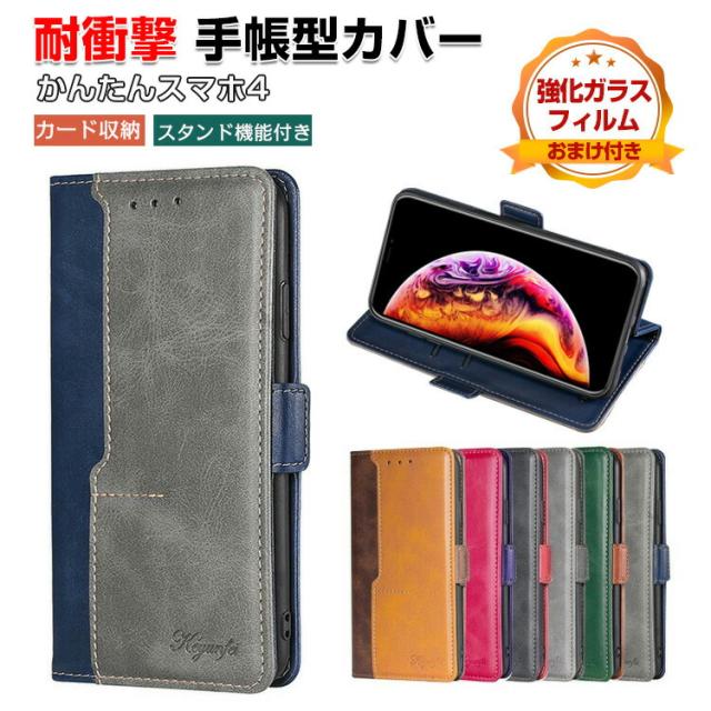 ZTE製 かんたんスマホ4 A402ZT ケース 耐衝撃 手帳型 財布型 TPU&PUレザー おしゃれ 汚れ防止 スタンド機能 衝撃吸収 便利 実用 カード収納 ブック型 マグネット内蔵 カッコいい 人気 保護 ケース 手帳型カバー ケース CASE 強化ガラスフィルム おまけ付き