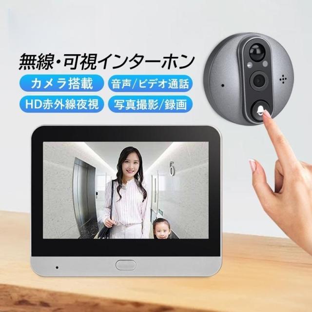 インターホン ワイヤレス 工事不要 テレビドアホン 通話 インターフォン 玄関 ワイヤレスチャイム 防犯 チャイム インターホン ドアホン カメラ付き 録画機能