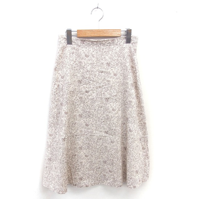【中古】23区 オンワード樫山 フレア スカート ロング 花柄 薄手 サイドジップ 40 ライトベージュ 薄茶 /TT
