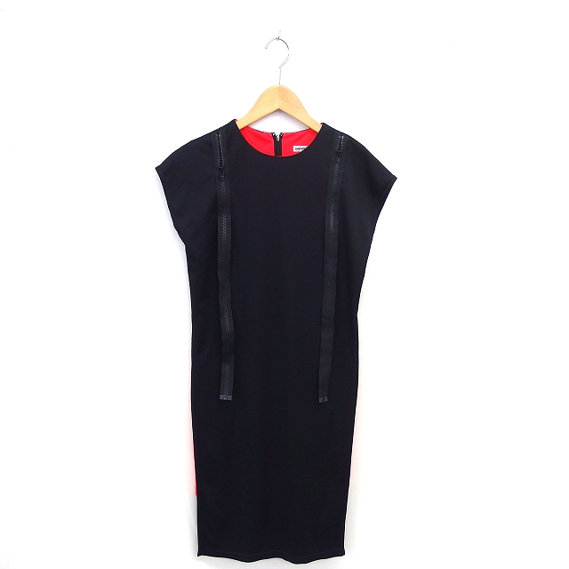 【中古】キャットコピー CAT COPY ワンピース タイト ロング ファスナー装飾 スリット ノースリーブ 黒 ブラック