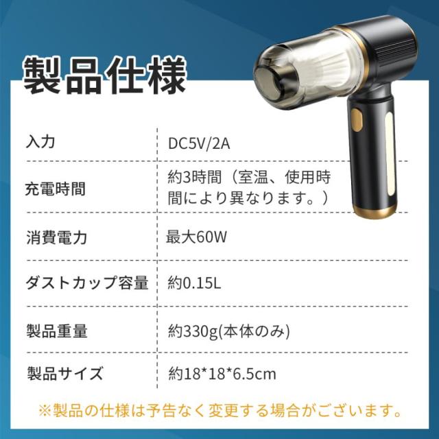 ハンディクリーナー 多機能車用掃除機 ハンディ掃除機 小型掃除機 コードレス パワフル 強力吸引 吹き飛ぶ/吸い込む/空気入れ/空気抜き