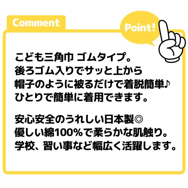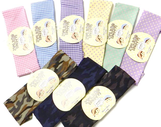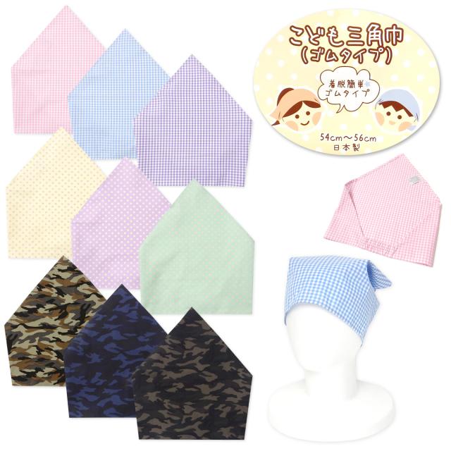 【送料無料】男児 女児 キッズ ジュニア 三角巾 ゴムタイプ 着脱簡単 日本製 綿100% チェック ドット 迷彩 子供 男の子 女の子 54cm〜56cm sl-0548【メール便対応】