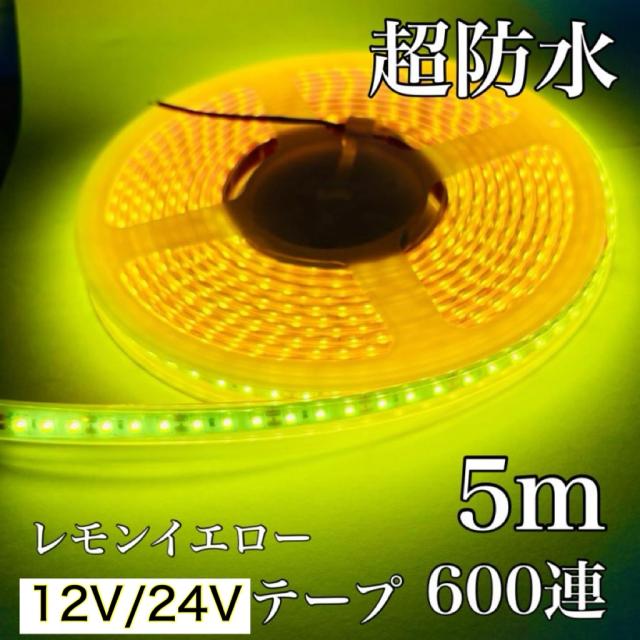 黄色 イエロー 12V 24V LED テープライト テープ 5m 2835smd 600連 超防水 白ベース 船舶 バイク 建設機械 ライト バルブ 電球 モール
