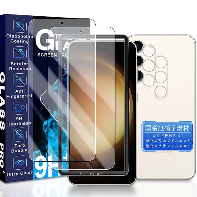 JCJCLY 対応 Galaxy s24 SCG25 / SC-51E / SM-S921Q ガラスフィルム 6.2インチ【2枚強化ガラス+2枚カメ ラフィルム セット】ガイド枠付き