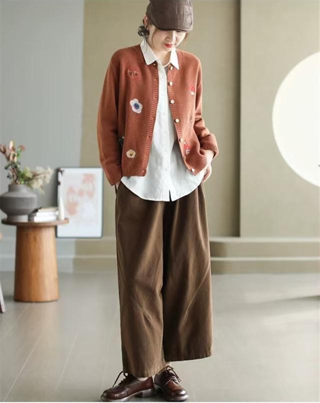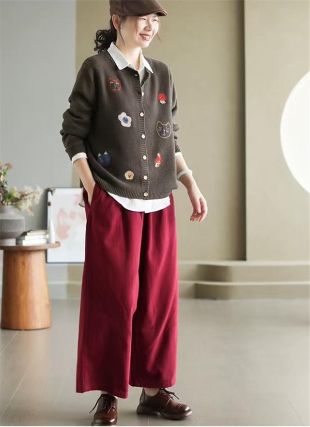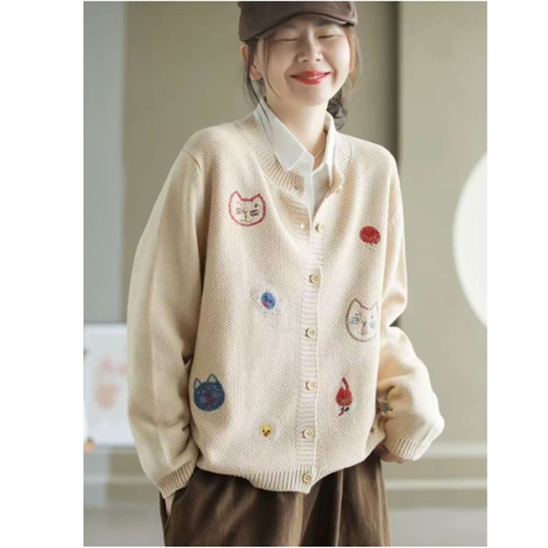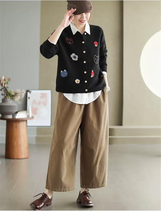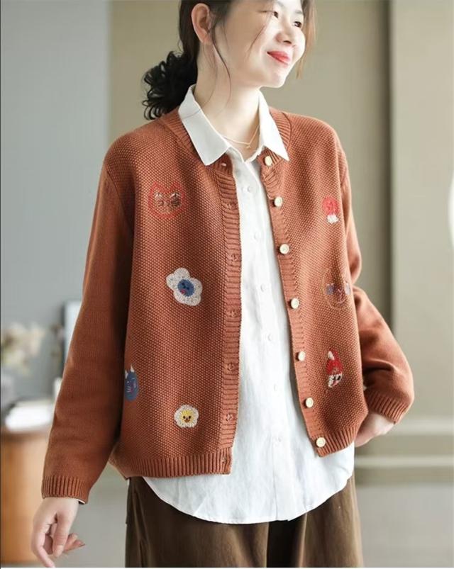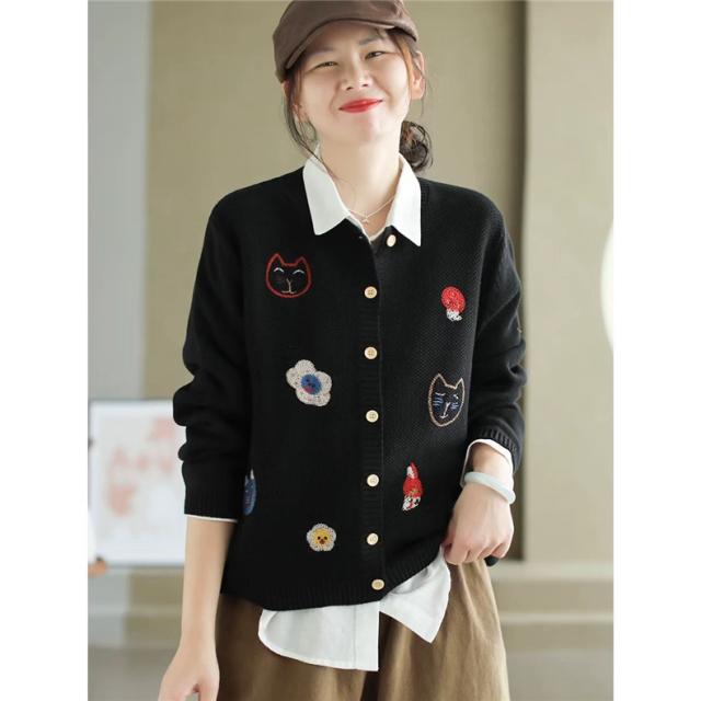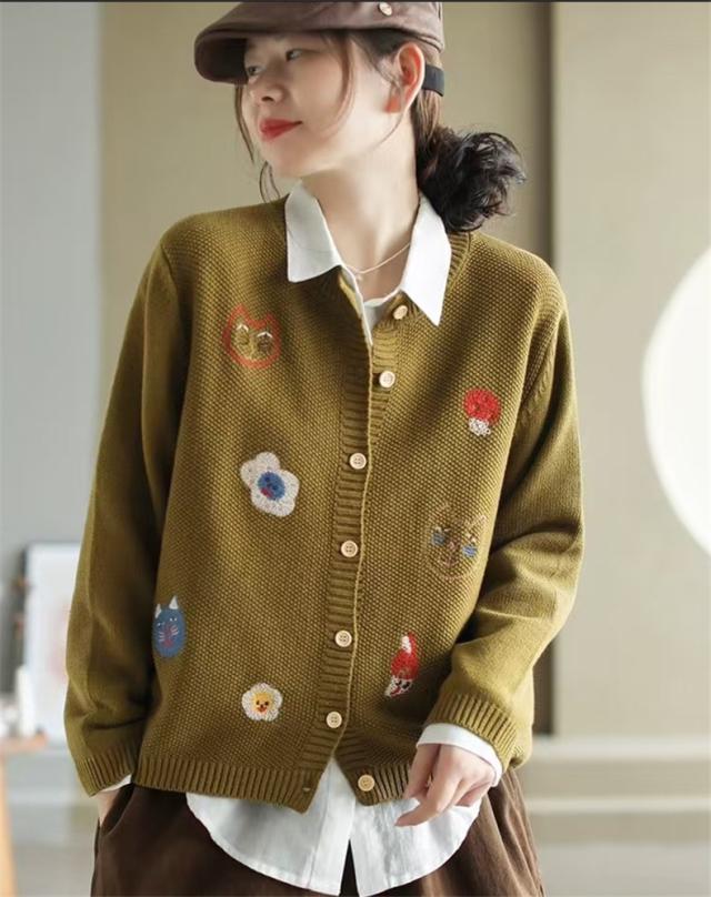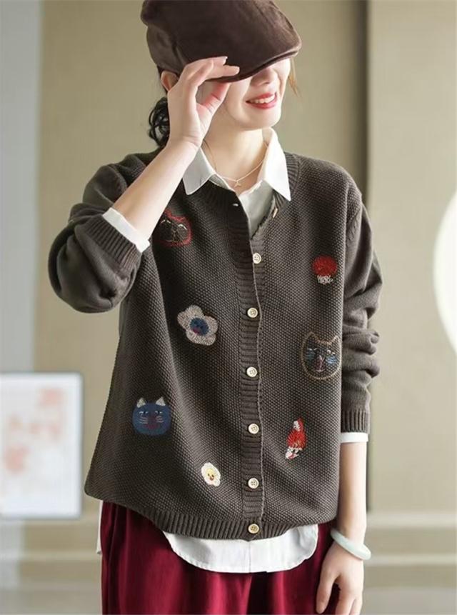 人気ニットカーディガン 体型カバー レディース セーター トップス ボタン 長袖 刺繍 漫画柄 上品さや洗練された印象 大人の女性を魅力的に見せてくれる