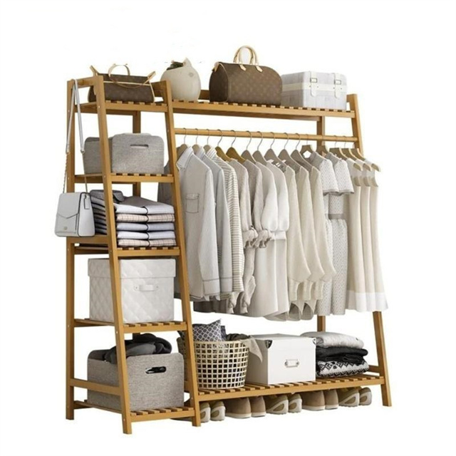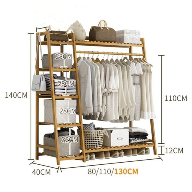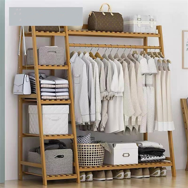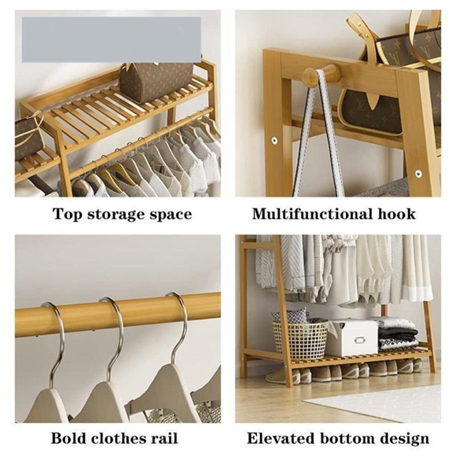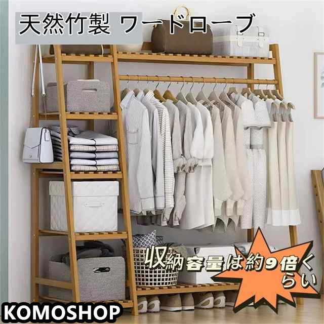 ハンガーラック 天然竹製 ワードローブ クローゼットポールハンガー 強力な耐荷重能力 おしゃれ 洋服掛け スタンド 押入れ収納 シングル衣類収納 頑丈 大容量 送料無料