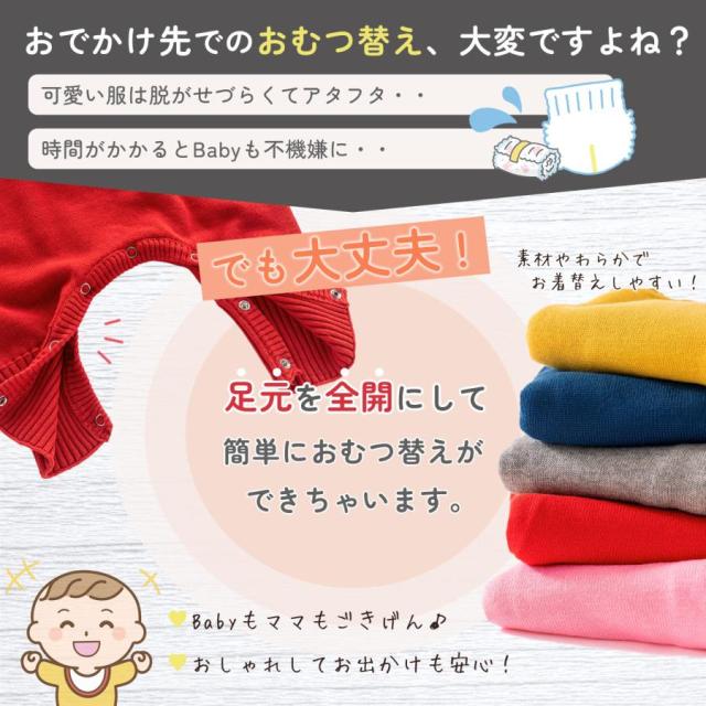 股下にスナップボタンがついているので、股の部分を全開にできおむつ替えやお着替えが楽ちんです。 〇対象年齢:0歳?2歳