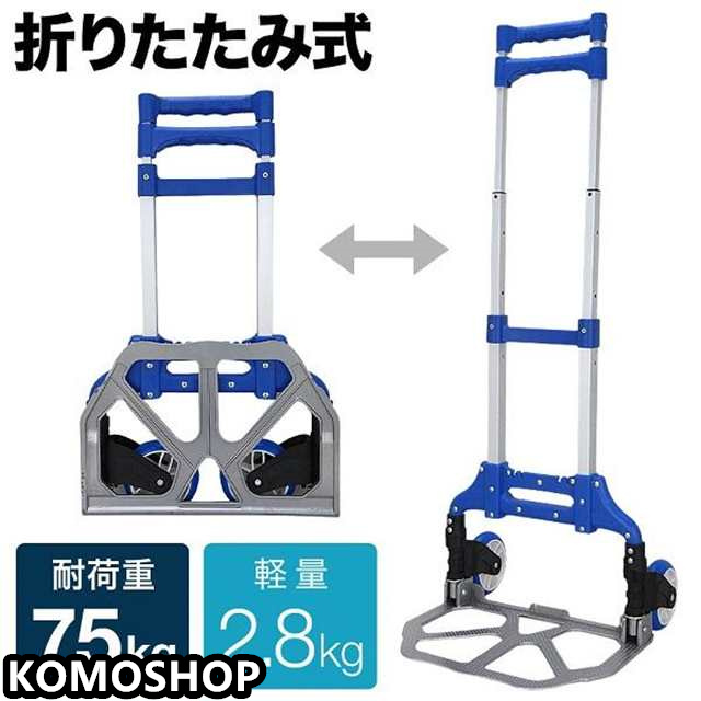 キャリーカート 折りたたみ 軽量 折りたたみ式 タイヤ ゴム ハンドキャリー ハンドトラック 台車 アルミ 耐荷重 75kg カート アウトドア 軽量 折り畳み 送料無料