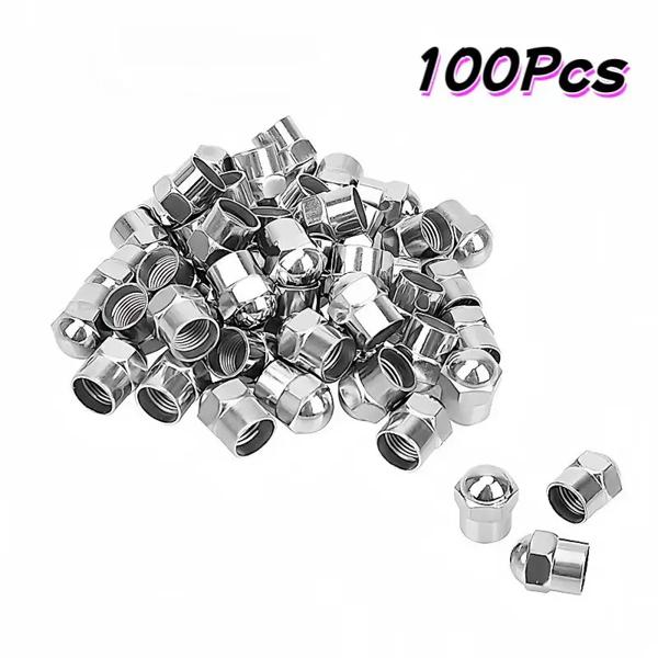 車のタイヤ用のユニバーサルプラスチックバルブキャップ,密閉カバー,タイヤアクセサリー,空気圧キャップ,クロムメッキ,100個