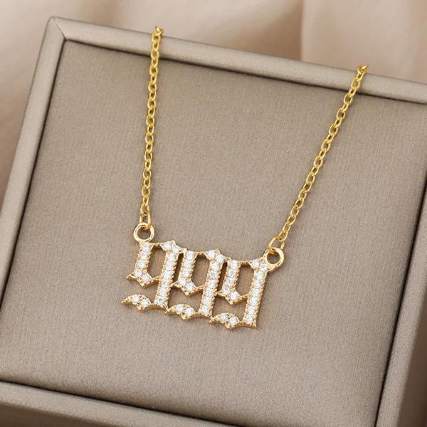 天使の数-女性と男性のためのステンレス鋼のネックレス,ペンダント,ジルコン,111,222,誕生日プレゼント,333