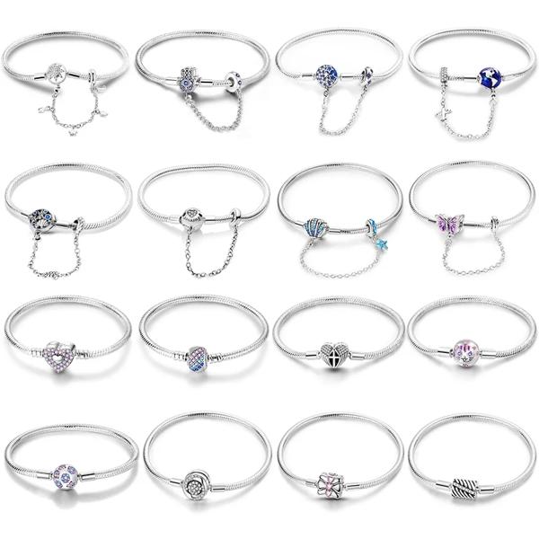 925スターリングシルバーブレスレットスター,ムーン,飛行機,地球,ジルコン,チャーム,ファインビーズ,ギフト,オリジナル,17〜20cm