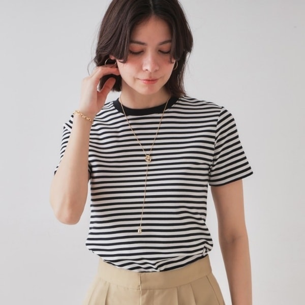 ・ストレッチ性があり身体に美しくフィットする、ジャストサイズのベーシックTシャツ。