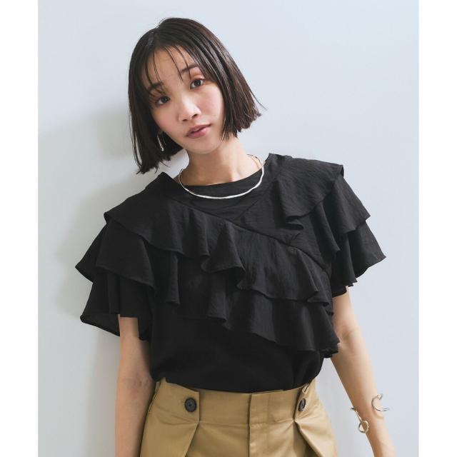 すっきりとした衿開きに顔回りが華やかに見えるラッフルブラウス。2025春夏も登場!