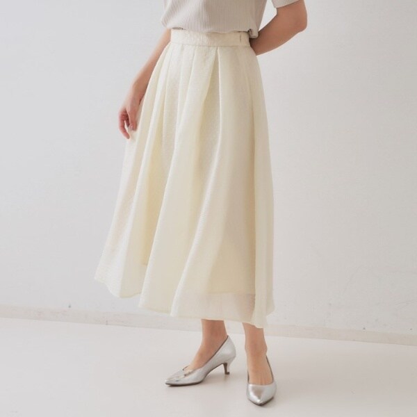 ほんのりシアーなジャガード素材を使用した、タックフレアスカート
