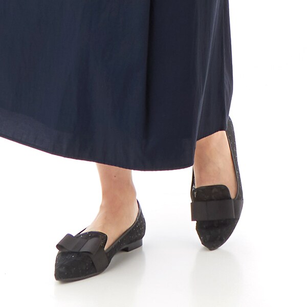 グログランリボンが程よいカジュアル感を出し、バランスのとれた1足です。