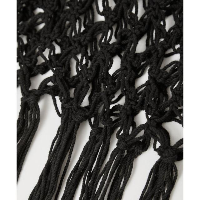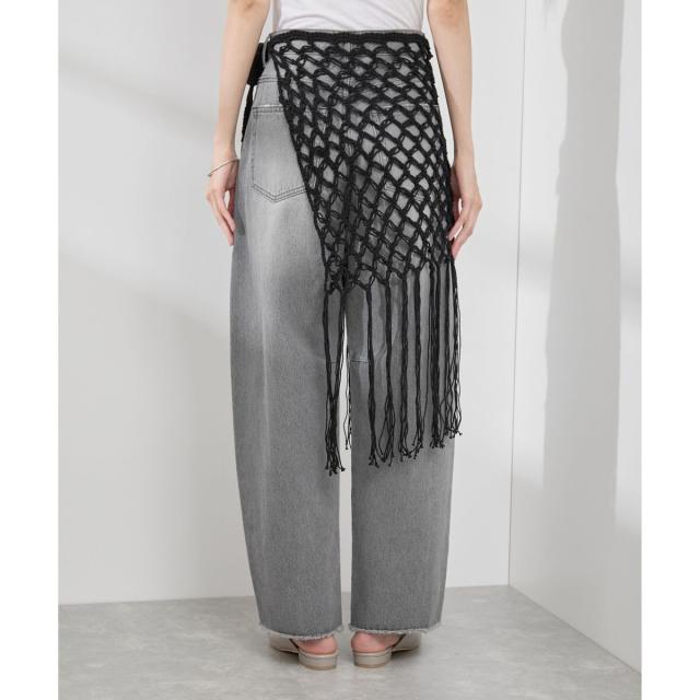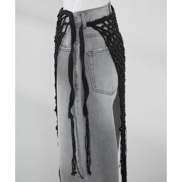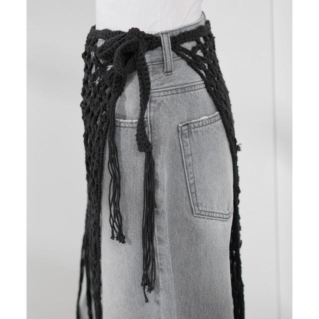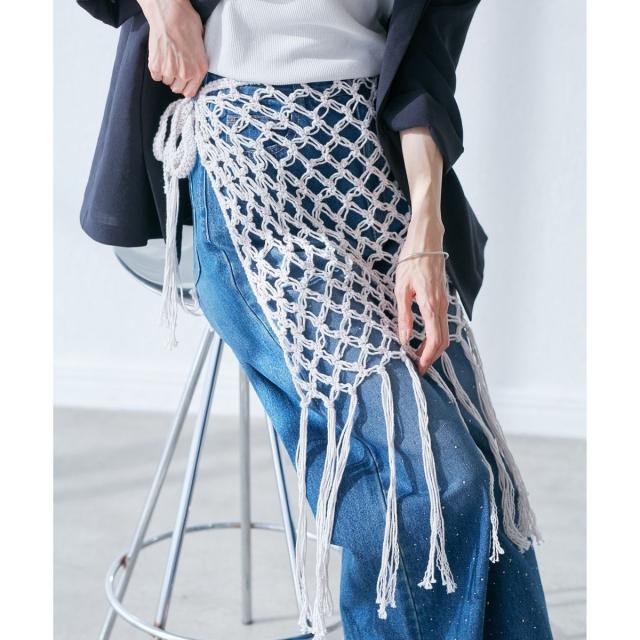 ・トレンドのマクラメ風に編んだかぎ針のニット巻きスカート。
