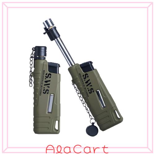 バーナー 小型 強力 耐風 バーナー ガス 充てん式 軽量 コンパクト 普段使い 登山 キャンプ スライドガストーチ (アーミーグリーン)