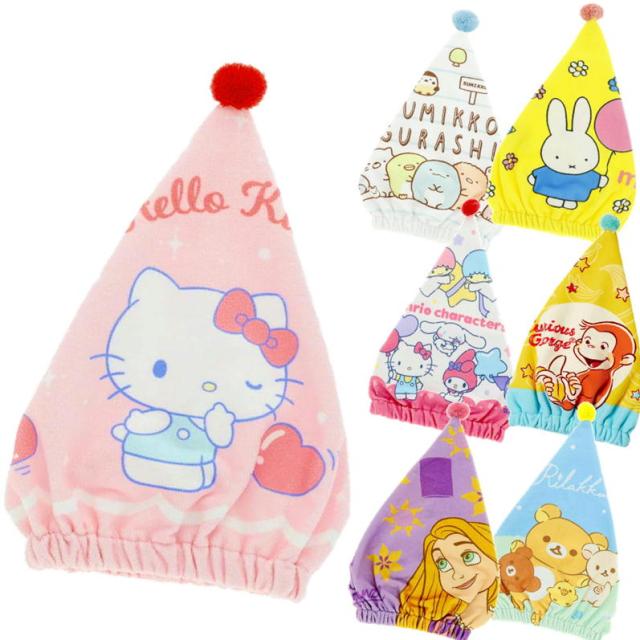 タオルキャップ キャラクター キャップタオル 丸眞 ディズニープリンセス サンリオ すみっコぐらし ミッフィー プール スイミング お風呂あがり 吸水速乾