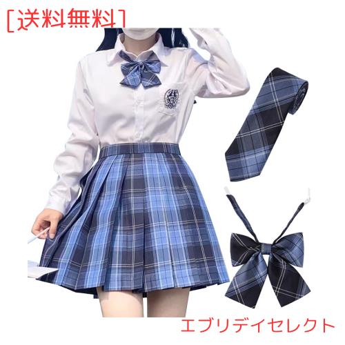 [Sharphon] チェック プリーツスカート 43/48CM丈 A12 制服 ハイウエスト プリーツ スカート 蝶結び ネクタイ 3点セット