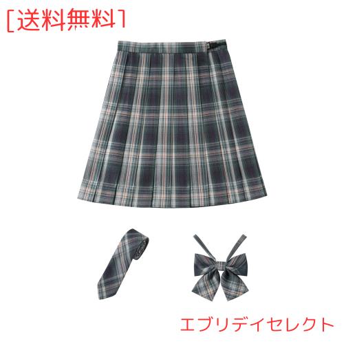 [Sharphon] チェック プリーツスカート 43/48CM丈 B12 制服 ハイウエスト プリーツ スカート 蝶結び ネクタイ 3点セット