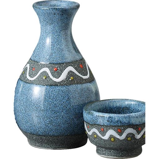 エールネット(ALE-NET) 酒器セット 徳利 おちょこ セット 径8.5×高13.5CM 340ML 青釉ウェーブ 2号 徳利セット 陶器 美濃焼 熱燗 燗瓶 冷酒 日本酒