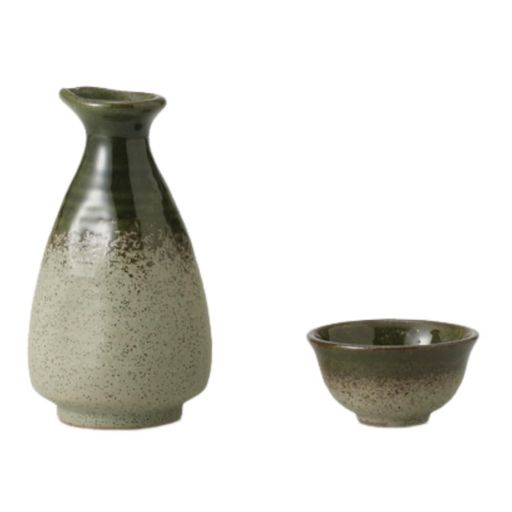 エールネット(ALE-NET) 酒器セット 徳利 おちょこ セット 若草織部 一合徳利 & 盃 (2個付) セット 陶器 美濃焼 冷酒器 熱燗 日本酒 酒器 とっくり 日本製