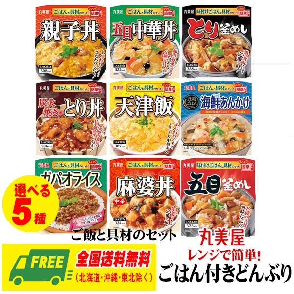 丸美屋 レンジで簡単! ごはん付き どんぶりシリーズ 選べる5食 セット 送料無料 防災 備蓄 常備食 常温保存