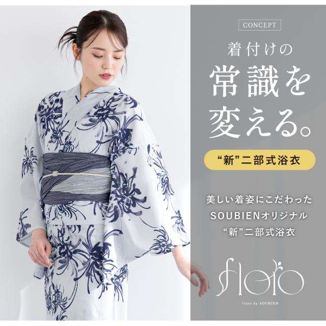 きもの館SOUBIENのプライベートブランド『floro by SOUBIEN』(フローロ)の女性用セパレート浴衣セットです。