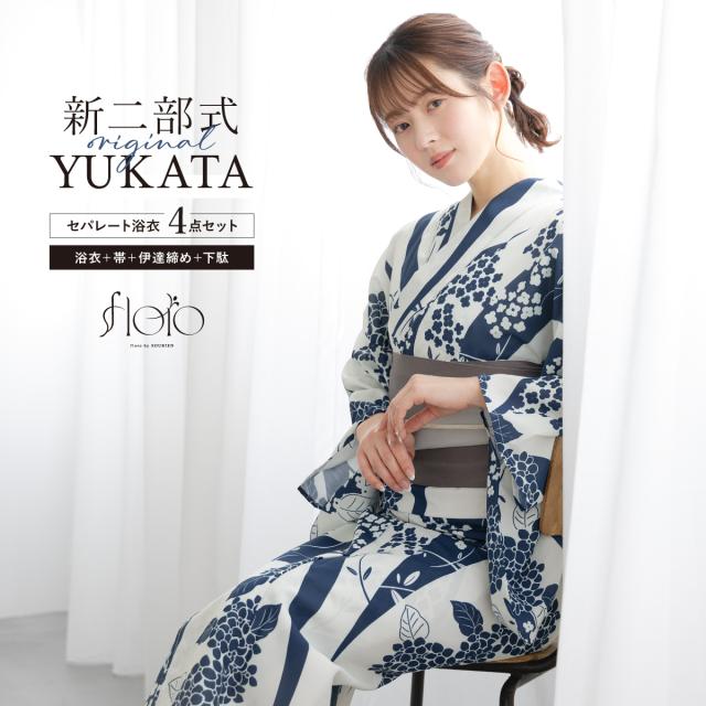 浴衣 セット レディース 二部式 セパレート 浴衣セット 半幅帯 2026 floro 簡単 悩まない 誰でも 涼しい コーディネート済み 白 紺 灰色 おしゃれ 可愛い 下駄 フリー 送料無料