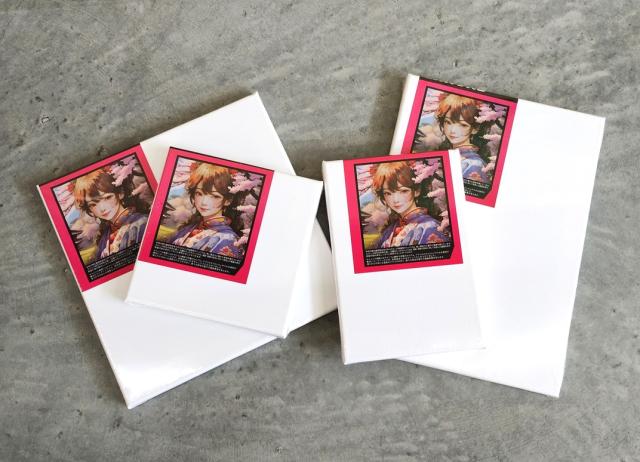 キャンバス表面にはチタニウム顔料や炭酸カルシウム、アクリルエマルションからなる塗料が贅沢にコーティングされ、高級感あふれるキャンバスに仕上がりました。