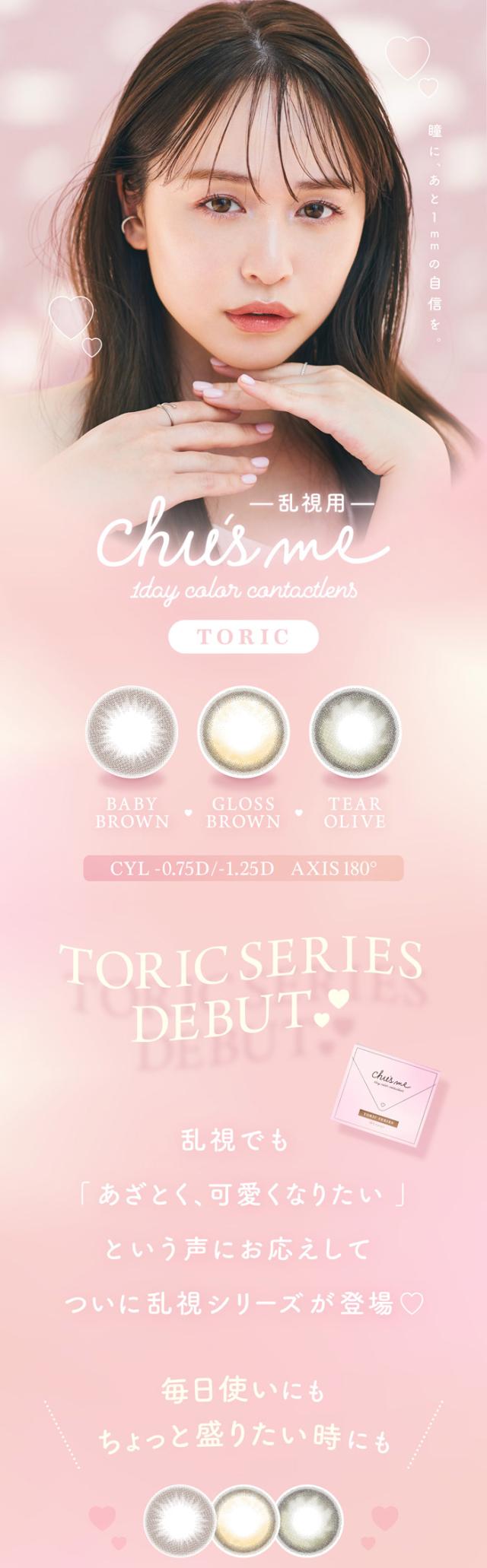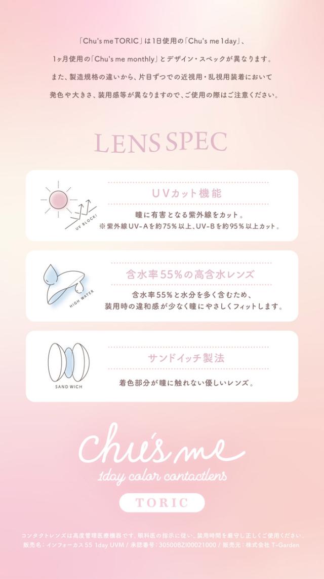 ポイント5倍 乱視用 カラコン ワンデー 度あり チューズミー chusme トーリック ゆうこす 菅本裕子 1箱10枚入り 14.2mm BC8.6 UVカット 高度数 ハイパワー モテクリエイター 水光感 透明感 韓国っぽ