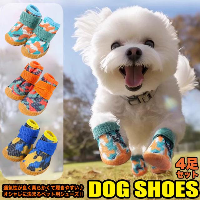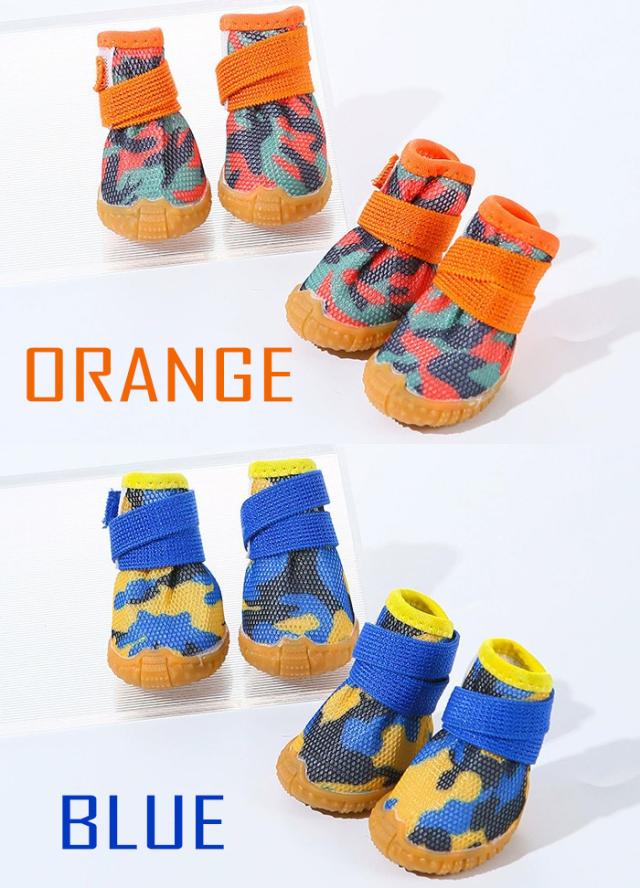 犬 靴 シューズ 迷彩 柔らかく履きやすい ペット ドッグ 肉球保護 ペットグッズ 4ピース h0607
