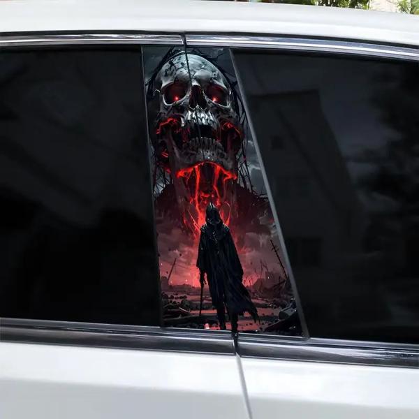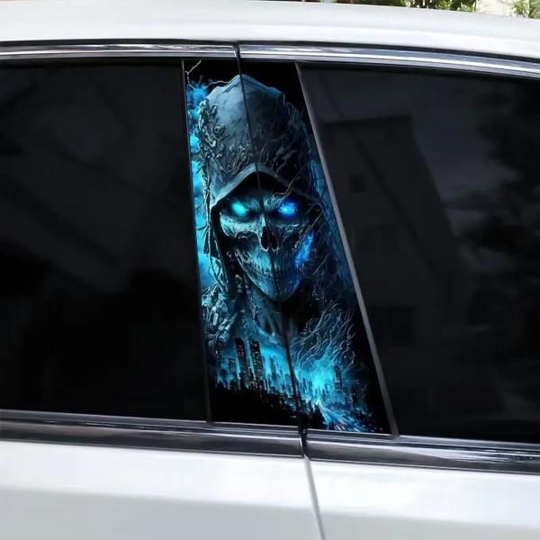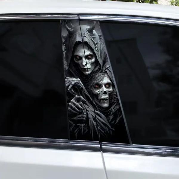 2 個スカル車 B ピラーデカールクールな車のドアピラーデカールビニール防水デカール Diy 修正された車のスタイリングデカール