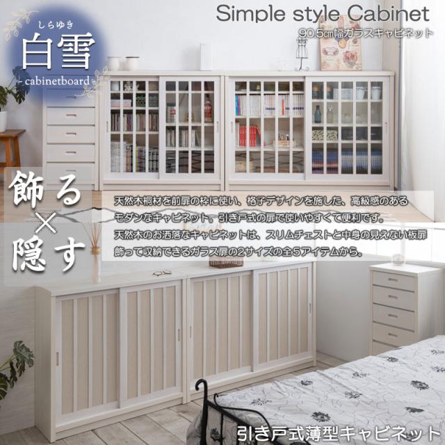 日本製 完成品 桐製 カウンター下収納 引き戸 ホワイト ガラス扉タイプ 幅90 【送料無料】 格子 引戸 収納棚 白 キャビネット 木製 奥行30cm インテリア おしゃれ 日本製 国産