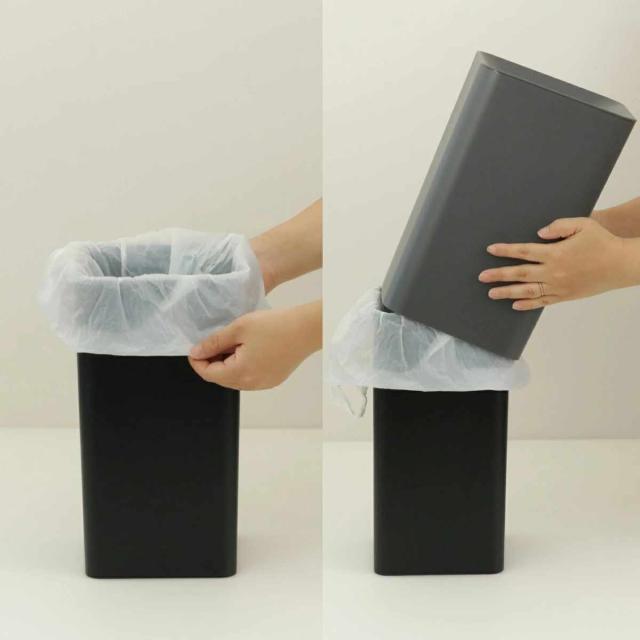 カバーを取り外して、内バケツに袋をセットしたらカバーをかぶせるだけ。袋を隠して生活感をオフにできます。