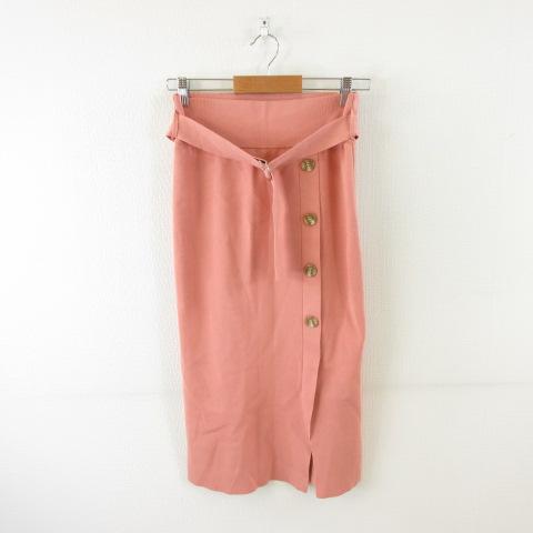 【中古】マイストラーダ Mystrada リブニットスカート ミモレ丈 ストレッチ ピンク 38 *A145 レディース