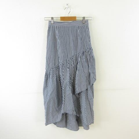 【中古】ミスティウーマン mysty woman ティアードスカート ロング ストライプ 紺 白 F *T655 レディース