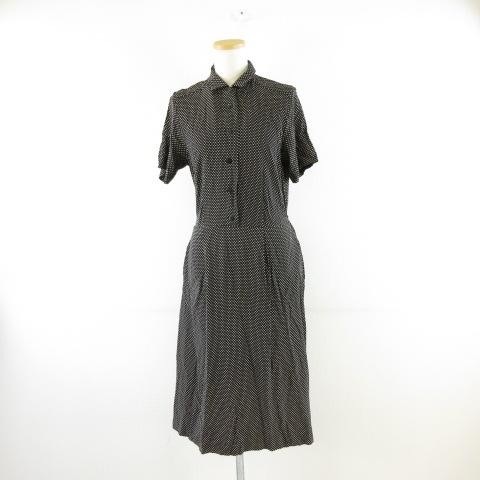【中古】ユニクロ UNIQLO イネス コラボ シャツワンピース 半袖 ひざ丈 ドット 黒 白 M *A128 レディース