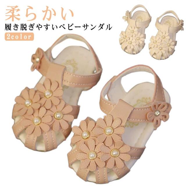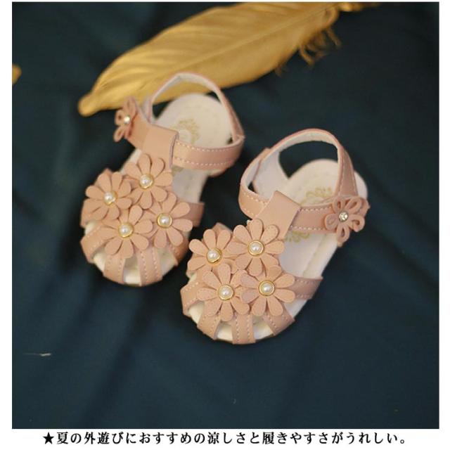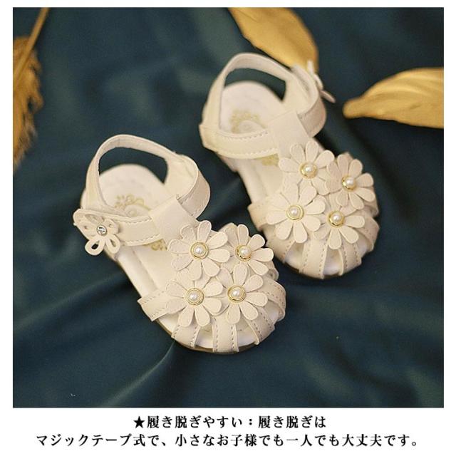 女の子 穴付き 子供靴 ベビーサンダル 靴 サンダル ファーストシューズ 脱ぎ履きがしやすい 赤ちゃん ビーチサンダル 新生児 ベビーサンダル マジックテープ フラワー かわいい つま先保護 夏用 結婚式 軽量 出産祝い