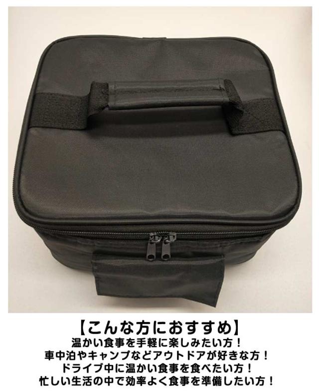 | 【加熱機能付き】 バッグ内に高性能ヒーターが内蔵されており、食事を4時間ぐらい温めることができます。冷めたお弁当を温かくし、どこでもできたてのような食事が楽しめます。 【USB式&12V対応で幅広い利用シーン】 USB接続に対応しており、自宅やオフィスの電源はもちろん、外出先でも使用可能です。また、12V対応なので車内でも簡単に加熱できます。車中泊や長距離ドライブ時に特に便利です。 【保温機能で温かさをキープ】 温めた食事を長時間保温できるため、忙しいランチタイムやアウトドアでの使用に最適です。バッグの内部は断熱素材を使用しており、保温効果が抜群です。 【コンパクト&ポータブル】 軽量で持ち運びが簡単なため、通勤通学、旅行、キャンプなど、さまざまな場面で活躍します。スペースを取らないコンパクトなサイズ感も魅力です。 【簡単なお手入れ】 バッグ内側は汚れが拭き取りやすい素材で作られており、清潔さを保つのが簡単です。日常使いでも安心してお使いいただけます。 【こんな方におすすめ】 温かい食事を手軽に楽しみたい方! 車中泊やキャンプなどアウトドアが好きな方! ドライブ中に温かい食事を食べたい方! 忙しい生活の中で効率よく食事を準備したい方! | |