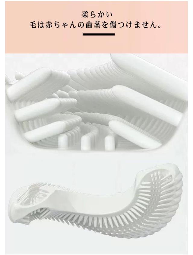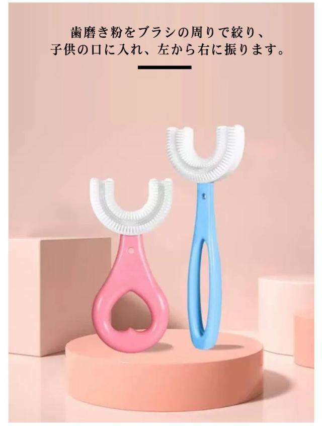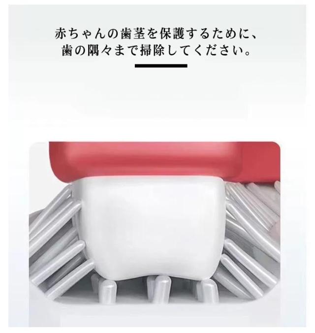 | 2~12歳幼児向け、U字型のブラシヘッドデザインは、歯によりよくフィットします。 歯磨き粉をブラシの周りで絞り、子供の口に入れ、左から右に振ります。 柔らかい毛は赤ちゃんの歯茎を傷つけません。 赤ちゃんの歯茎を保護するために、歯の隅々まで掃除してください。 PPとシリコン素材でできており、耐久性があり使いやすいです。 | |